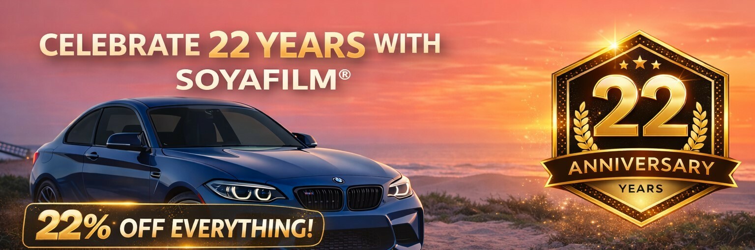 SOYAFILM® - Supereasy Tönung für Ihr AutoDie Einfachste Tönung der Welt für Ihr Auto!SOYAFILM® = 22years = 22% DISCOUNT!aus 303 NOK(Normaler Preis : 388 NOK)
